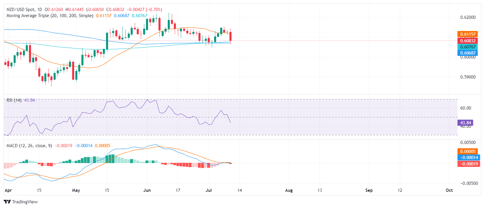 周三,纽元兑美元下跌,跌幅愈 0.70%,报 0.6080,跌去 20 日简单移动均缐(SMA)的支撑,该支撑在上周一度贝重新夺回,并使前景转為看跌。