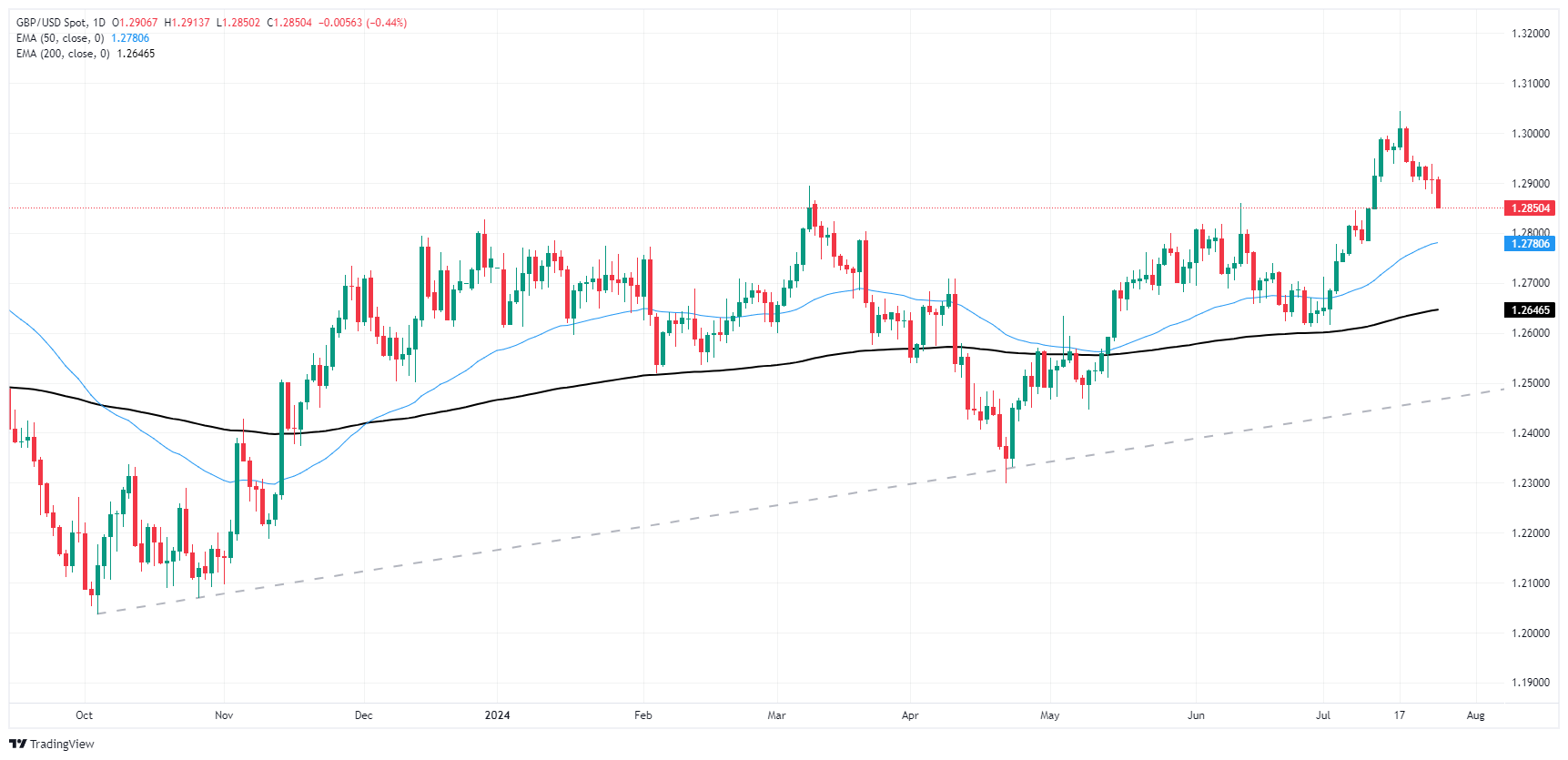 联准会将于周三公布 7 月利率决议,英国央行将于周四公布利率决议。市场仍普遍预期联准会将在下一次会议上继续维持利率不变,但市场认為英国央行降息25个基点的机率约為50%。货币市场认為英国央行的基准利率将从 5.25% 下调至 5.0%,英镑与美元息差扩大的预期给英镑带来了下行压力。
