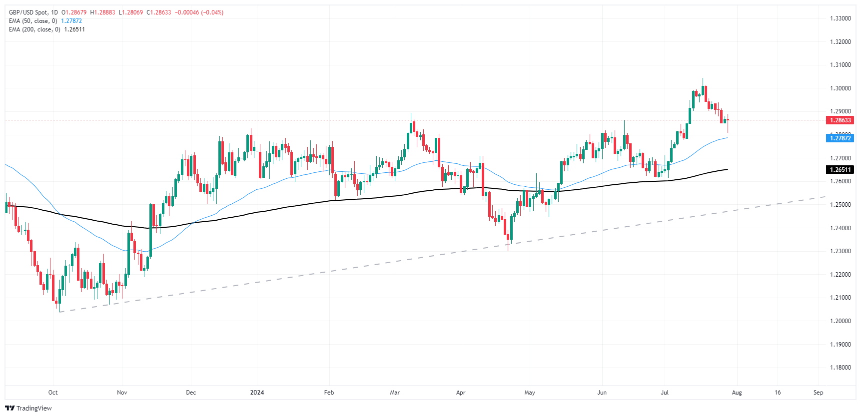 英镑兑美元周一探低,跌至两周新低 1.2807,但空头仍未准备让该货币对跌破 1.2800 关口。英镑/美元持于 50 天指数移动均缐(EMA)1.2787 上方,处在200 天指数移动均缐 1.2651 上方。