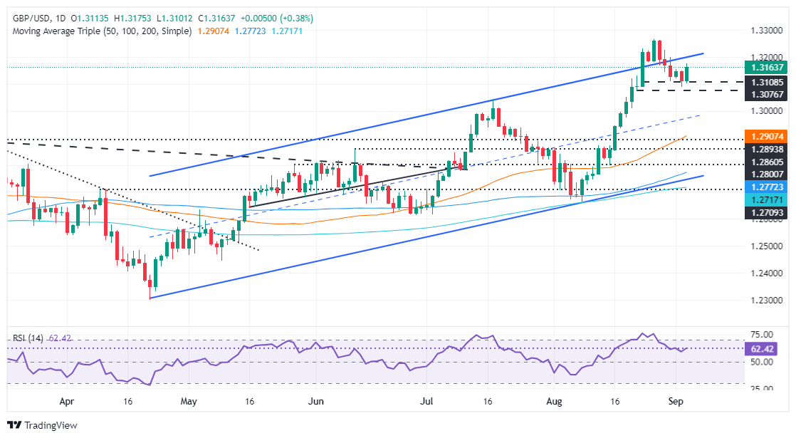 - 英镑/美元突破 1.3140,获得短期动能,RSI 指标向𧹒方倾斜。