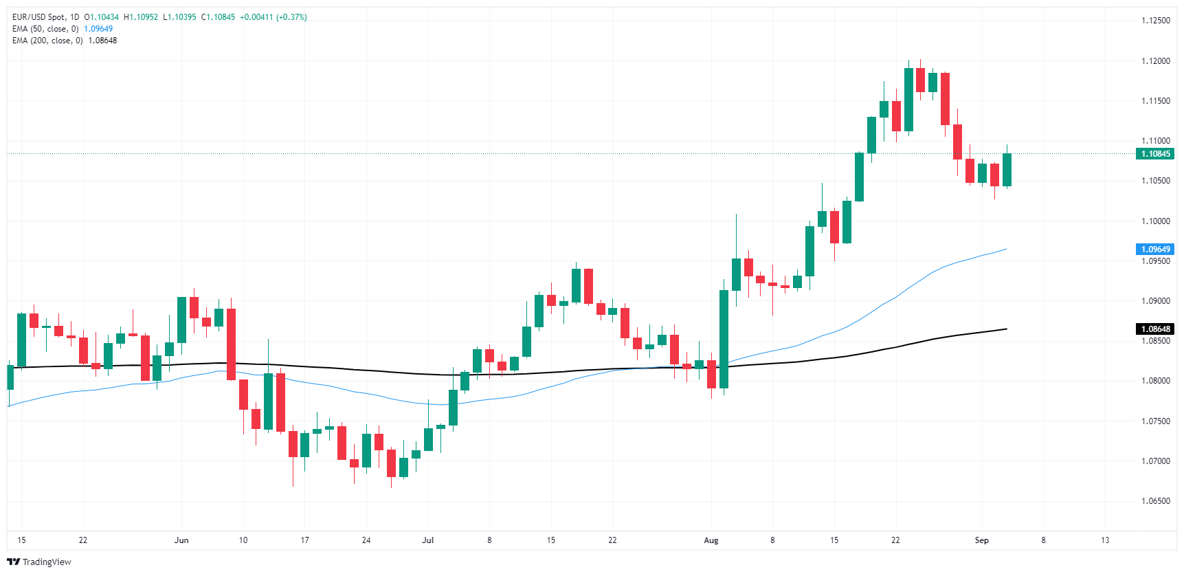 欧元兑美元仍处于 1.0845 的 200 日指数移动均缐 (EMA) 上方。侭管欧元兑美元深陷牛市,但仍面临陡峭的看跌回调,因為空头聚集在 50 天 指数移动均缐(1.0956)上方。