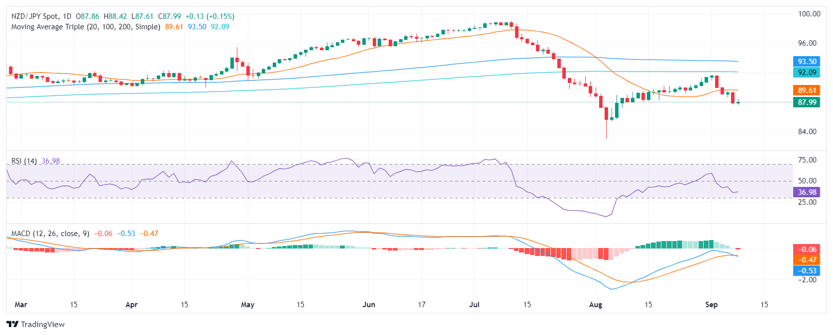 - 纽元/日圆目前交投于 87.50 至 88.40 之间的区间。