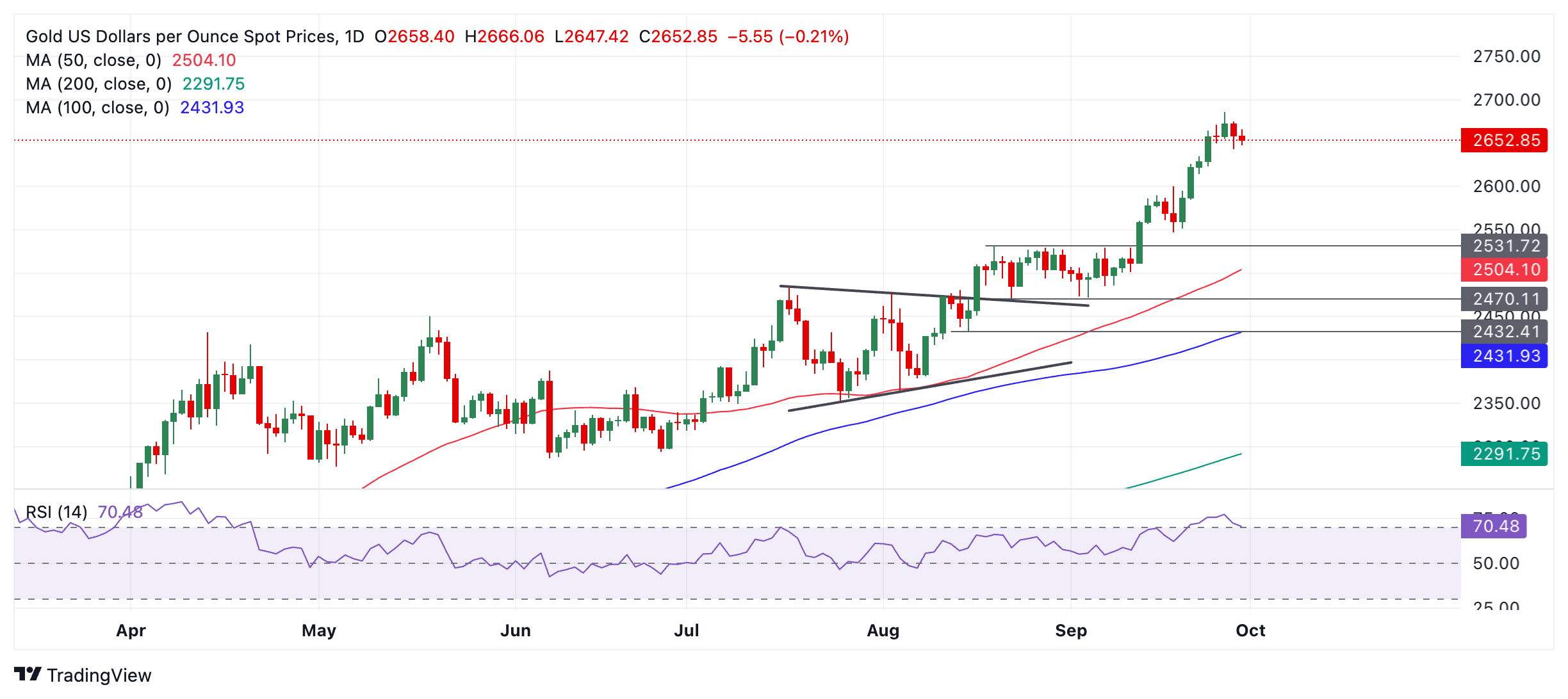 如果出现更深层次的修正--现在看来很有可能--坚定的支持位在 2,600 美元(9 月 18 日高点)、2,550 美元和 2,544 美元(9 月涨势的 0.382 斐波纳奇回撤位)。