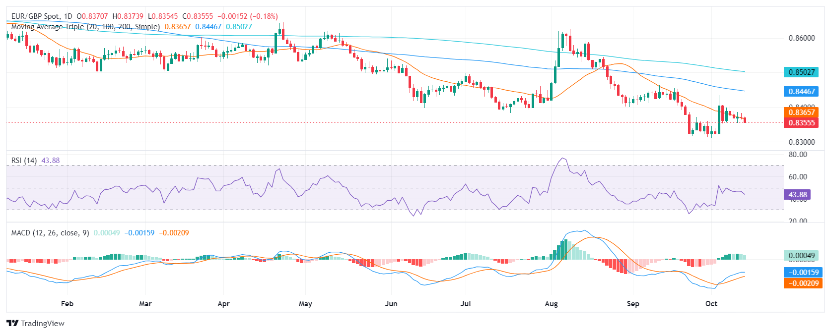 欧元/英镑货币对一直未能在 0.8400 阻力上方维持涨势,显示多头正在难以夺回控制权。相对强弱指数(RSI)目前為 45,表示货币对处于负面区域,低于 50 中性临界值。此外,相对强弱指数的下降表明抛售压力正在加剧。