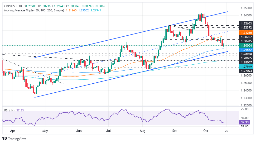 - 相对强弱指数的看跌动能暗示,如果货币对连续收在 1.3000 下方,将出现更深度的修正。