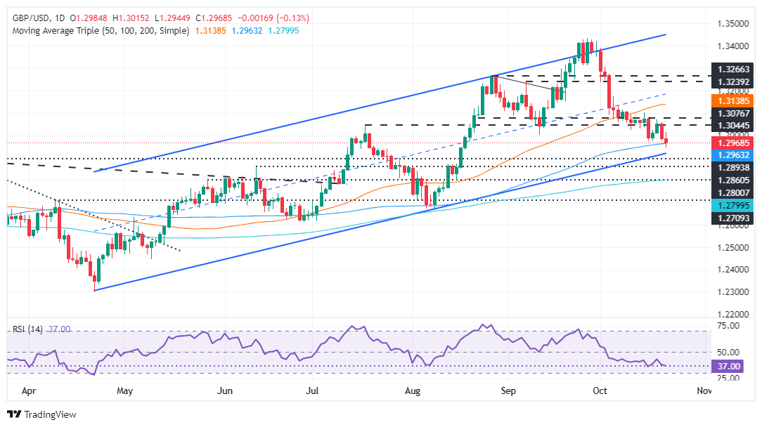 英镑兑美元连续两日扩大跌幅,卖方果断跌破了 1.3000 这一关口,这可能為进一步下行铺平道路。截至发稿时,英镑兑美元交投于1.2961,围绕100日均缐(DMA)波动,跌幅為0.15%。