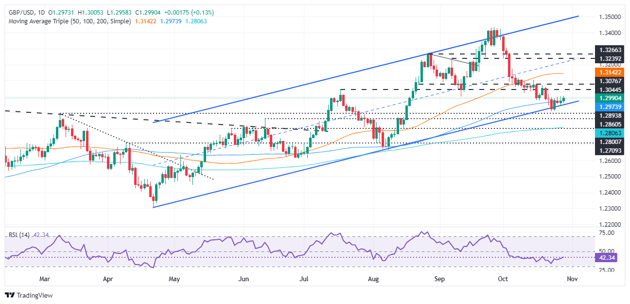 - 𧹒方在 100 天 SMA(1.2971)维持支持,收于 1.3000 上方后目标将是阻力位1.3100 和 50 天 SMA 1.3139。