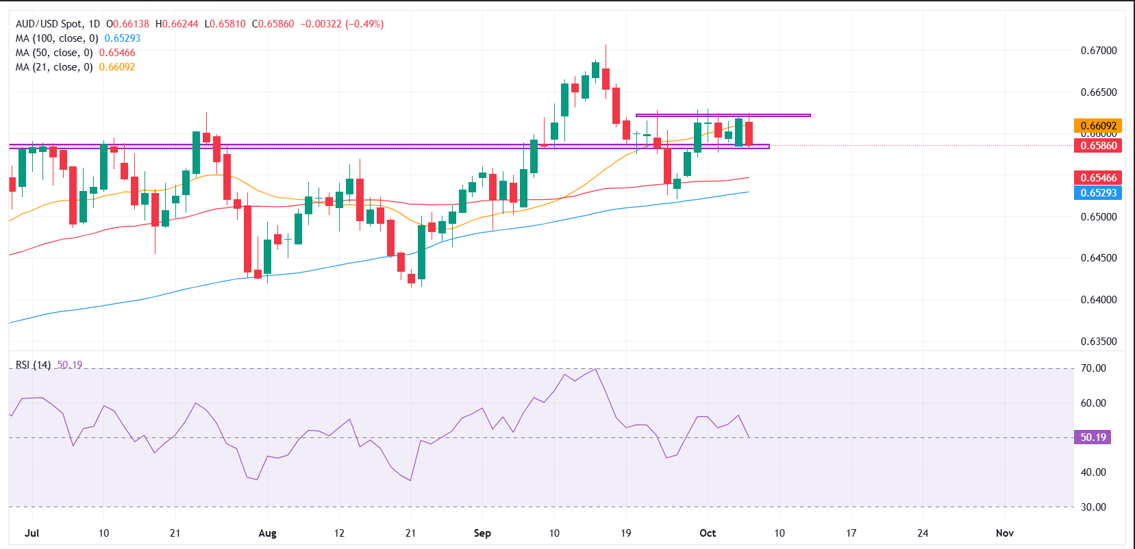 - 初始支撑位在0.6580,随后是50日SMA和100日SMA。