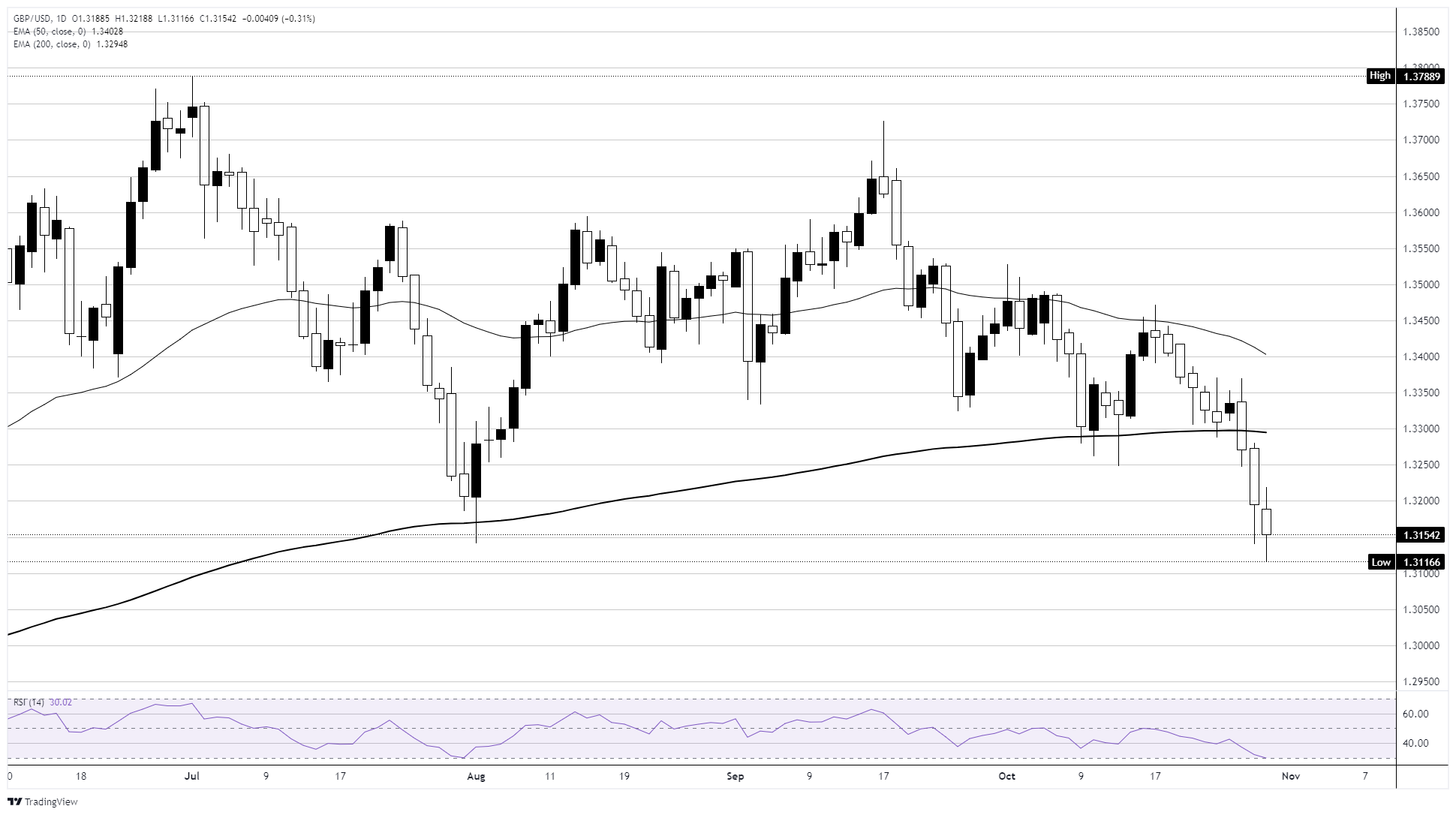- 英镑/美元周四再次下跌,10月份下跌超过2%。