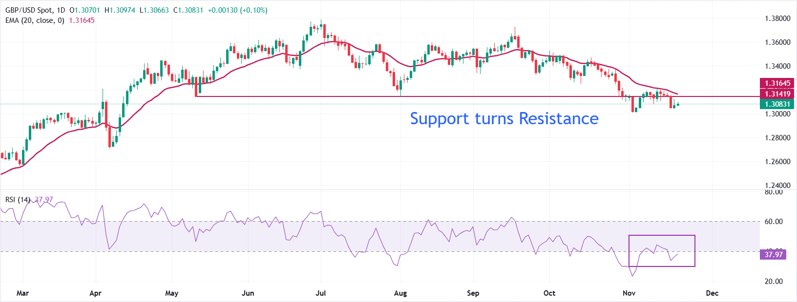 • 在周五的欧洲交易时段,英镑努力维持对美元(USD)1.3050的即时低点。由于美元走强,GBP/USD对也面临广泛压力,市场普遍预期美联储(Fed)在12月的政策会议上可能不会再次降息。