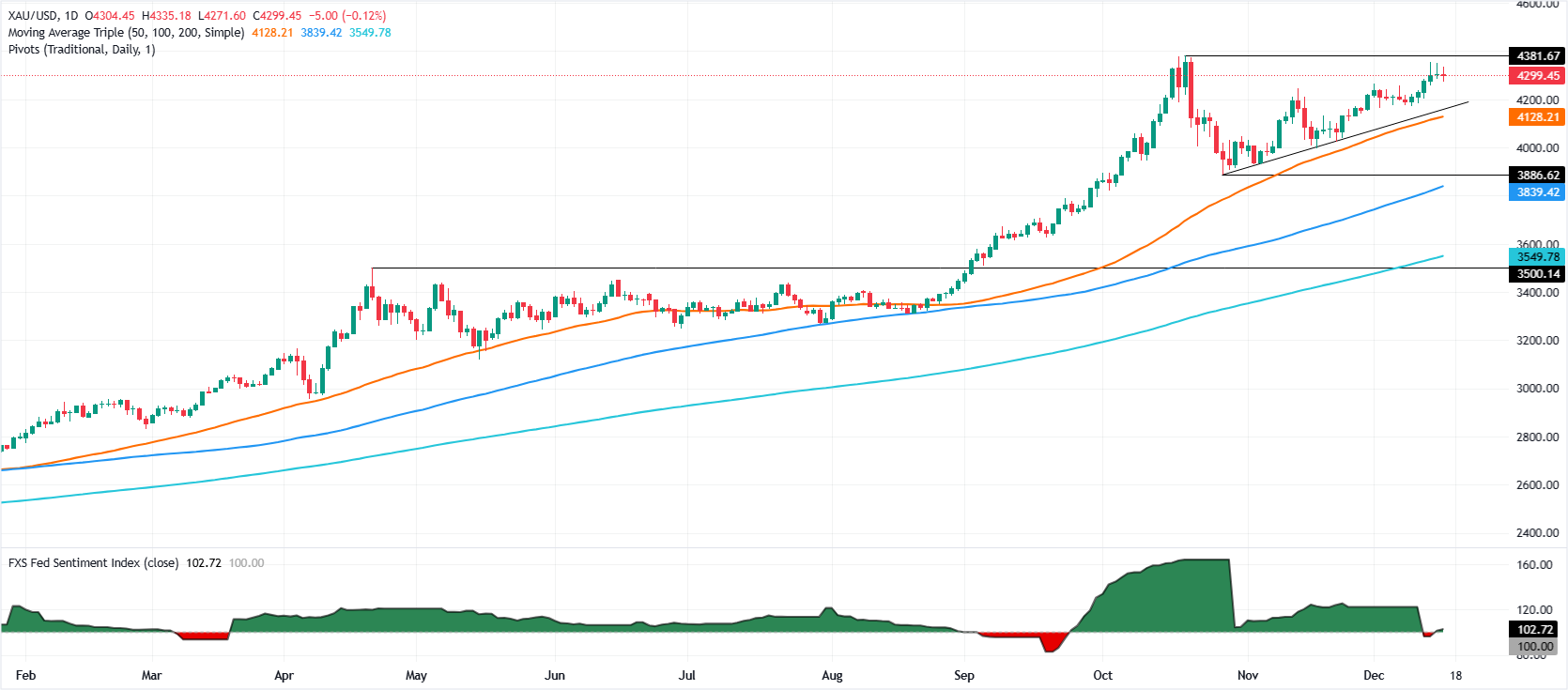 技术分析:黄金在4,300美元上方的上涨趋势保持完好