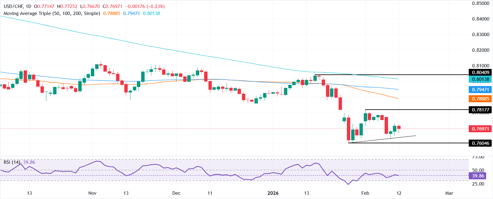 侭管美元/瑞郎在约0.7600触底并回升至0.7800,但该货币对已经註册了一个更低的高点,為进一步下行铺平了道路。自达到峰值以来,该货币对向0.7627靠近后又恢复上涨,在过去三个交易日中,它在0.7600-0.7700区间内盘整。