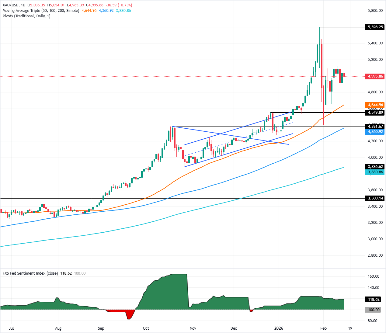 XAU/USD价格预测:金价跌破5000美元,关注关键的4900美元