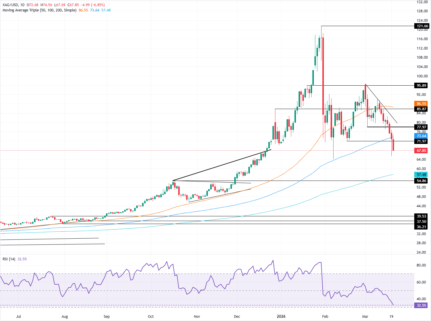 白银价格预测:白银/美元暴跌,跌破70美元以下关键水平