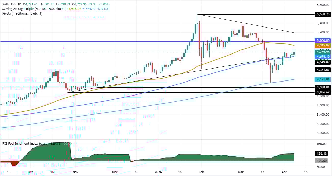 黄金接近4800美元,因美元走软和收益率上升提振需求