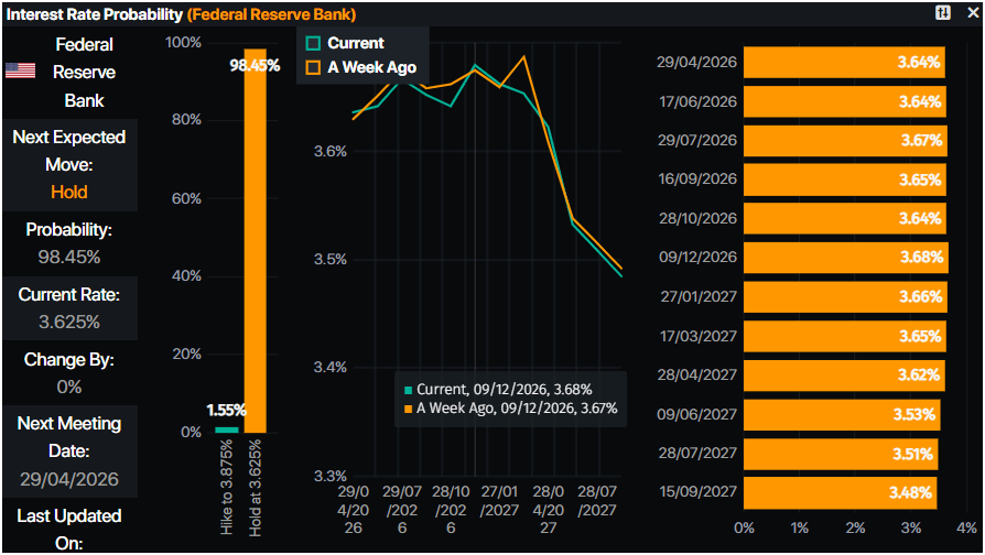 根据Prime Market Terminal(PMT)数据,货币市场显示交易者对美联储降息的预期保持不变,预计年底前降息幅度為7.5个基点。